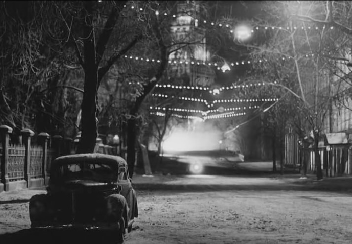 Кого замечательно играет моя жена Гета Яновская? Я не знаю. Догадываюсь, что у нее какие-то близкие отношении с героем в прошлом и что она боится за него. Кто этот странный, смешной, интригующий человек, появляющийся в начале фильма и прекрасно сыгранный А. Башировым? Не берусь сказать. Запомнил только, как он радостно, идиотски, словно все одобряя и благословляя, повторяет: «Я не оглядываюсь, не оглядываюсь!» — когда его хватают и тащат в машину, потому что он, кажется, оказался на территории, на которой находиться нельзя. Я не разобрал, он слесарь или истопник, но никогда не забуду, как после почти двухчасового своего исчезновения из фильма он появляется в сиянии новогодней гирлянды, уныло причитая: «Опять бьют? За что бьют? Все время бьют».