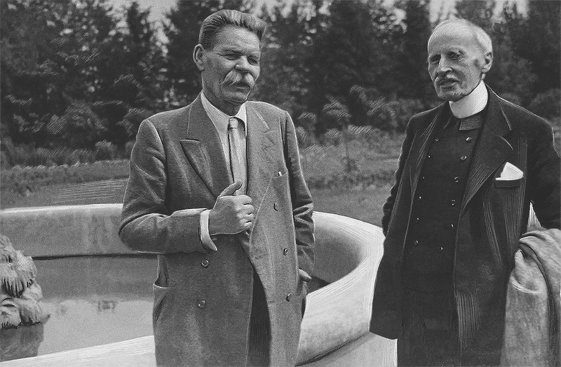 Приехали по чудесной дороге на чудесную дачу. В дверях столовой стоял Горький, и мы проходили, предварительно рукопожав.