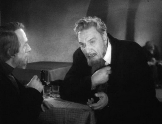 В трагедии Гауптмана Симонов заслоняет собой все — весь спектакль. Он не делает для этого никаких усилий — не премьерствует, не существует, подобно гастролерам, вне общения, вне партнеров. Наоборот, он весь — в общении, разнообразном и тонком, с людьми, предметами и атмосферой. Бутафория спектакля словно оживает около него, вещи становятся его личными вещами, действующие лица — родственниками и знакомыми Маттиаса Клаузена. Вне этого общения их нет — и действующие лица и предметы умирают, превращаются в «театр».