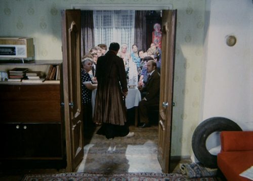 Герман Лавров и Станислав Любшин ставили «Даль», танцуя от прежних постановочных наработок Шукшина, прикидывая под него. И вышло очень бережно, всё удалось. Это шукшинское кино. Явно под «Калину красную», с ее эстетикой будущего телевизионного театра решена первая сцена. Герой Ульянова навещает разведенную сестру (Лидия Федосеева-Шукшина) и журит ее разболтавшегося сынишку-двоечника. Потом отсылает мальчика играть и говорит, что, кстати, нашел сестре жениха, и тот будет через десять минут. Федосеева бросается прихорашиваться, а камера остается неподвижной, нет склеек, комната все та же. Просто Ульянов после этой фразы выныривает на секунду в другую комнату за водкой, а когда возвращается в кадр, камера отъезжает, и на столе, за которым только что шел семейный совет, вдруг оказываются селедка под кольцами лука и прочий антураж застолья. Такая типичная «скатерть-самобранка» ернического телетеатра 1970-х, взятая на вооружение в фильме «Любовь и голуби» (1984). Декорации сами себя перестраивают, чтобы зрителям и постановщикам не тратить время, переходя от сцены к сцене.