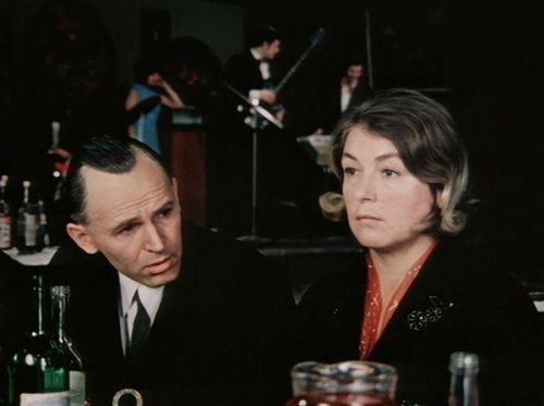 Возможно, именно этот сценарий поставил бы Шукшин следом за «Калиной» и сыграл бы роль Любшина — алкоголика в завязке, который весь ушел в бухгалтерию и вечером смотрит «постановки» по телевизору. Шукшин бросил пить за семь лет до смерти, и рисовал этого персонажа с безжалостностью и обидой на жизнь. Эта стадия — еще хуже, чем нажираться и врать про Гитлера. Что же дальше? В «Калине красной» Шукшин уже ощеривался до страшного облика, и можно представить, как бы он поглумился над этой свой завязавшей ипостасью. Любшин, надо сказать, создал типа крайне скользкого, но без той досады на жизнь, которая была бы у Шукшина.