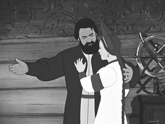 В «Аленьком цветочке» я переживал буквально каждый шаг Настеньки и Чудища, каждую их интонацию. Когда Настенька шла на самопожертвование, спасая отца, тайком брала у него волшебный перстень и переносилась на остров, взволнованность наша с художником, Алексея Консовского, «игравшего за кадром роль чудища» (тут в обрисовке его внешнего облика мы отталкивались от врубелевского демона, старались передать его взгляд, исполненный страдания), плюс музыка передавались зрителю, и ее фраза: «Для меня сорвал отец цветочек аленький, мне и ответ держать», — волновала и зрителя.