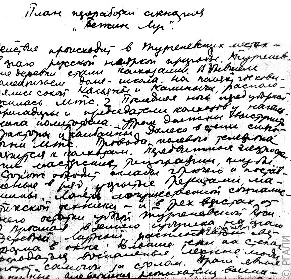 Бабель. И. План переработки сценария «Бежин луг»// РГАЛИ. Ф. 1923. Оп. 1. Едхр. 373.