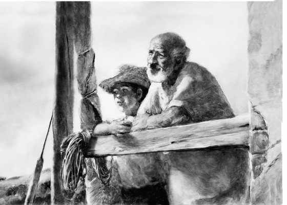 Зарубежная (прежде всего — американская) анимация нередко страдала необъяснимой невыразительностью, плоскостностью, даже примитивностью отображения на экране образов людей — особенно в сравнении с такими живыми, как раз одушевленными (что и подразумевает значение слова «анимация»), весьма привлекательными зверюшками самого разного рода. А теперь, в эпоху развития компьютерных технологий, это проявляется просто-таки с пугающей очевидностью: игрушки в двух сериях компьютерно-анимационной «Истории игрушек» выглядят человечнее, чём их хозяева. Александр Петров поражает воображение в своей последней ленте невероятной естественностью, как бы всамделишностью экранной реальности, нарисованной непосредственно его пальцами на оконном стекле. Он восхищает зрителей словно настоящими морскими и небесными пейзажами, немыслимо фактурным, вещественным представлением всех деталей земного бытия (например, лодка Сантьяго кажется настолько подлинной, что будто ощущаешь запах ее древесины). Но добивается самого сногсшибающего эффекта в том, что его мультипликационный человек зрим и ощущаем как актер в игровом кино.