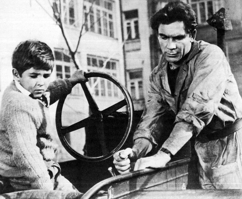 И молодой рабочий парень с незнакомым дотоле уважением взглянет на маленькую детскую скрипочку с замысловатым рисунком эфов и, притихнув, будет слушать игру своего нового друга, уже не стесненную стуком метронома, но дисциплинированную им. И если рабочий человек гордился когда-то мозолями на руках, то он с пониманием взглянет на мозоль, натертую скрипкой на подбородке маленького «музыканта». Так же инстинктивно, молча, как мальчик понял смысл труда и цену хлеба, он поймет в эти мгновения великий труд и великую силу искусства. Поймут оба и захотят скрепить свое взаимопонимание самым простым, житейским образом: совместным походом в кино на старого «Чапаева».