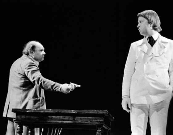 Режиссер завершает спектакль мизансценой, которая — понимать ли ее буквально или метафорически — доводит до логического конца тему ординарности Иванова: плотная толпа гостей, окружившая было самоубийцу, расступается — и мы видим его, стоящим в их кругу. Стрелял, но не застрелился? Или, может быть, существует и в наши дни со своей преждевременной усталостью, равнодушием, красивыми словами и благими намерениями, которые дорого стоят другим?
