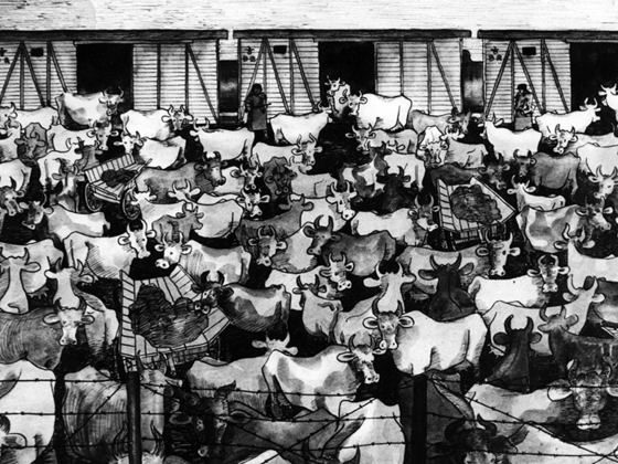 Еще будет несколько кадров, показывающих коров, сгрудившихся за проволочной оградой, немецких солдат, пинающих ногами мычащих тварей, бесконечную череду товарных вагонов, в которых скотину повезут в Германию. Как ни скупы эти немногие кадры пролога — в них эмоциональный заряд на весь последующий фильм. Нам и так, кому по личному опыту, кому из книг и воспоминаний старших, известно, что довелось пережить тем, кто остался под врагом, как грабили оккупанты народ, обрекая его на голод и вымирание, за что и против чего шли на бой, на смерть партизаны. Но здесь это умозрительное знание становится живым, осязаемым,