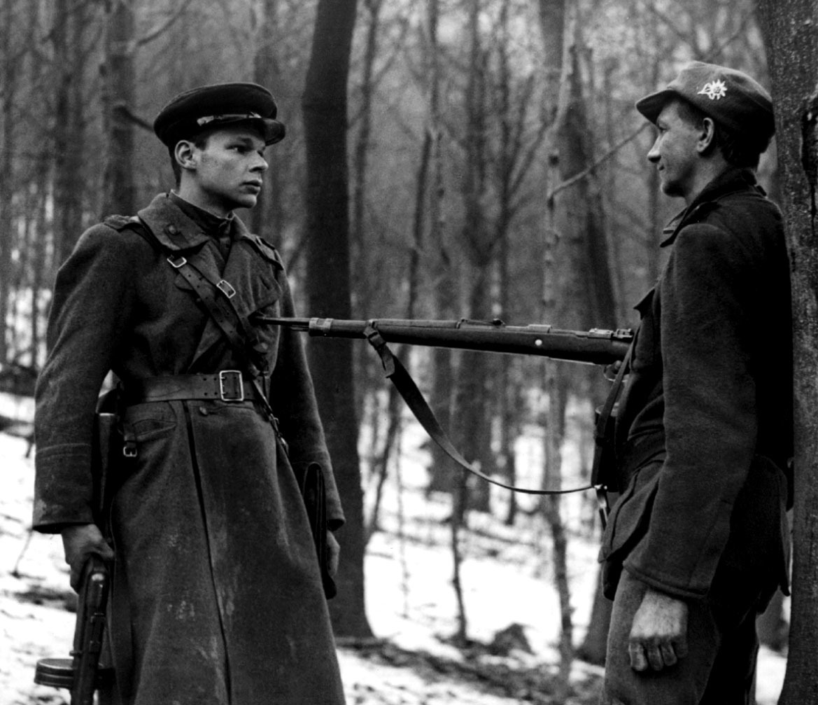 Хороши в фильме юмористические интонации. Да, на фронте смеялись! Попадав в грязь от налетающего снаряда и оставшись невредимыми, зачастую шутили и смеялись. Так и в повести, и в фильме много непосредственного юмора. История с гусем, например, обычным гусем, приблудившимся и ставшим любимцем редакции, но проглотившим бесценную литеру «А» и чуть было не пошедшим за это в суп. Никто из газетчиков резать его не стал. И его отпустили. Пожалев гуся и показав его продолжительный полет над лесом — к жизни! к свободе! — авторы погрешили сей возвышенной метафорой против реалистической стилистики фильма: домашние гуси так не летают. Может быть, не стоило его съедать, как в повести Алексеева, но и делать символом картины тоже не стоило...