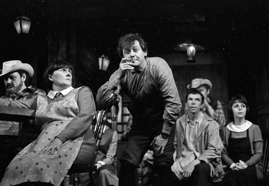 А Главный интеллигент был уже поистине фантасмагоричен. Черты продавщицы и лектора гиперболически укрупнялись, вырастали до огромных размеров в этом хаме, обладавшем влиянием и силой. Любопытно, что, если в образах продавщицы и лектора артист прибегал к очень ярким средствам сценической выразительности, здесь он был предельно скуп, он как бы пунктиром намечал то, о чем зритель должен был догадаться сам. ‹…›