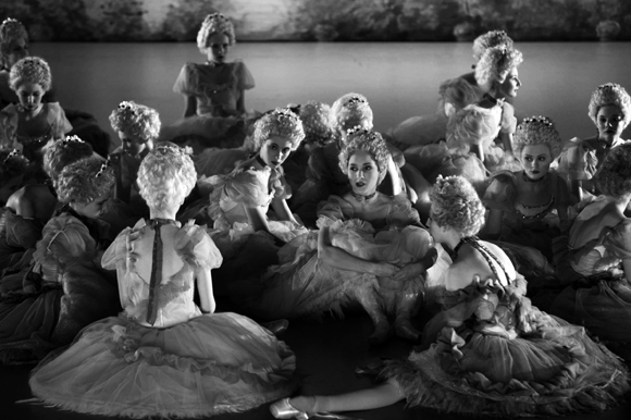 Трудно даже сказать, чего в несчастном, несправедливо гонимом фильме Учителя больше — красоты или скорби о судьбах царя и отечества. Красота его десертная, парфюмерная, кондитерская. Словно бы заходишь во дворец, а там одни конфеты и все нарядные до невозможности. Конфеты «Николай II» и «Матильда Кшесинская», пастила «Александра Федоровна» кисло-сладкая, шоколадные наборы «Императорский двор» и «Мариинский балет». И все это кружится, как 32 фуэте, сверкает отражениями в трельяжах и бокалах. И свет играет на великолепных портьерах, рюшах и аксельбантах, золоте, парче и хрустале. И тени ложатся так грациозно, так нежно, как балерина в постель к престолонаследнику. Каждый кадр оператора Юрия Клименко жаждет нашего «ах!» и стеснения в груди. А какие костюмы нарисовала художник Надежда Васильева! Зажмуриться и задохнуться.