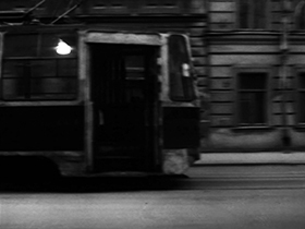 Уже в первом фильме пойман (на двадцать лет вперед) завораживающий ритм, гармоничное чередование улиц, лестничных клеток, музыки и речи; собираясь в жгуты диалогов, история расслабляет суставы на оказавшихся позже фирменными проездах-проходах, бытовые детали вроде галош и супа с петрушкой и клецками нашинкованы вместе с пунктиками метафизическими, какой-нибудь песней в небеса, взглядами в пустоту, фантасмагорическими погонями все за тем же трамваем... Это как прыгать по камушкам, преодолевая залитую грязью улицу, — вроде и не сложная задача, а расслабиться нельзя, упадешь.