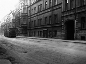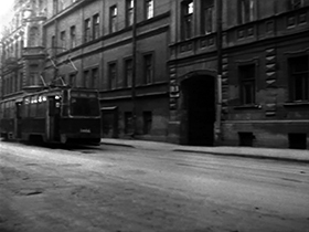 Отдельные сцены, напротив, хочется провести по разряду фокусов крупных. Ошарашивающий проход героя по площади перед Царскосельским дворцом (ее еще и не опознаешь, эту площадь, хотя вот что, казалось бы, трудно «остранить») — доктор, исходящий на эмоции под Вагнера из граммофона, — бочки в подворотне, выписанной из немецкого экспрессионизма, — затопленный город с погружающимся в воду трамваем — радикально отвлеченные от реального хронотопа кладбищенские пейзажи: кадры в учебник, в историю, в пыльную вечность музеев.