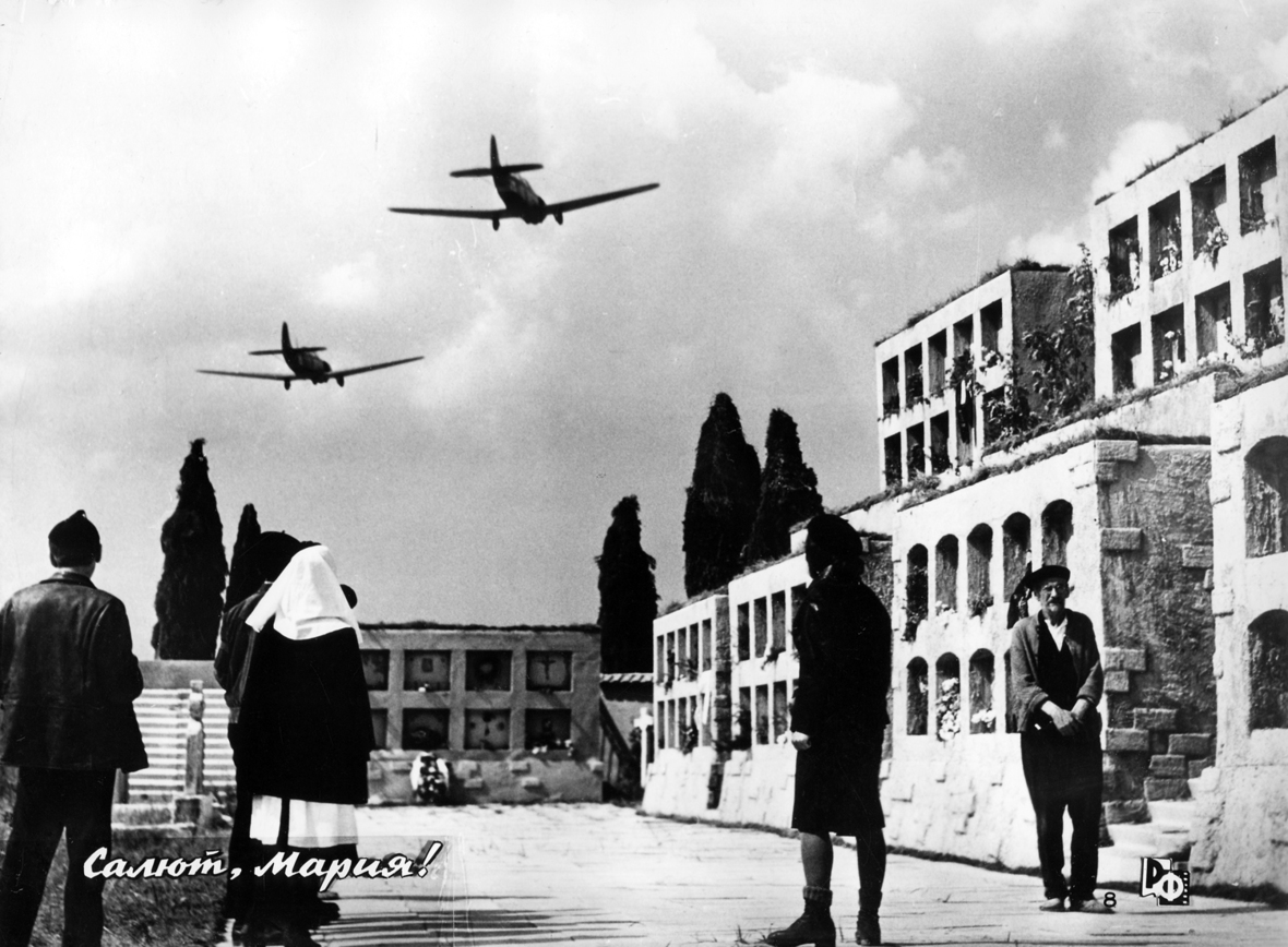 Недавно мне пришла в голову одна музыкальная мысль. Дело в том, что в Польше я жил в гостинице и мой номер находился над рестораном. До глубокой ночи наисовременнейший джаз «рвал душу» шейком и твистом, было весело, подпевали хором и притоптывали. Но все танцы строились только на темах революционных песен 20-х годов! И никто, наверно, не задумывался, подо что он до седьмого пота танцует со своей девушкой. И не подозревал, что эти великие песни, ставшие твистом и шейком, не просто каприз композитора-аранжировщика, а скорее символ сдвига времен и смены поколений. Я сниму конец фильма так: Мария-69, старушка с авоськой, идет по новому Арбату и с любопытством всматривается в лица прохожих, в лица молодежи. Где-то сквозь стекла кафе слышен джаз и угадываются танцующие пары. И звучит этот самый шейк или твист на революционную тему ее юности, на темы тех песен, с которыми она жила, боролась и дважды умирала.