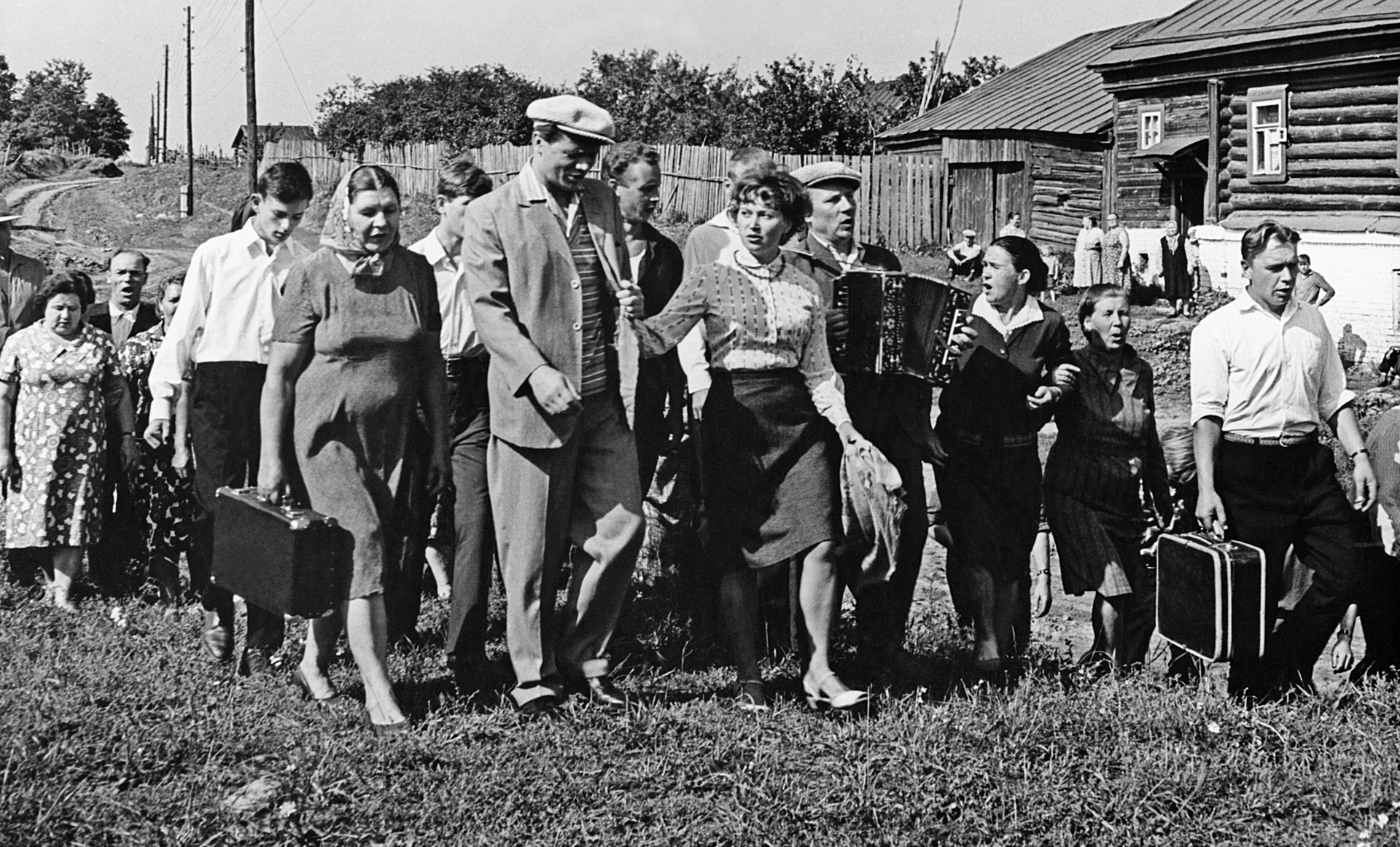 Колхозного председателя Матвея Ивановича Рязанцева играет Всеволод Санаев с его номенклатурной статью. Он подчинил свою жизнь интересам долга и служения, но на склоне лет начинает задумываться о таких метафизических материях, как любовь и смерть, даже воображает собственные похороны. В образе взрослой дочери героя — Елена Санаева. Она воплощает новые настроения деревенской молодежи — не хочет быть дояркой, стремится поступить в институт и уехать в город. Рязанцев озабочен: если все уедет, кто же будет обрабатывать землю? Что за народ пошел: нет хозяина, дом заваливается, а он не почешется. Учитель истории возражает: накормить себя человек не забудет, а хорошо, если не забудет еще и песню спеть. Председателя и так достали эти новые песни: «Качаясь, качаясь, качаясь…», «Любовь — кольцо…». И танцы дикие — вместо душевных народных. И слова «салют», «чувак» (говорят, все от давления Запада).