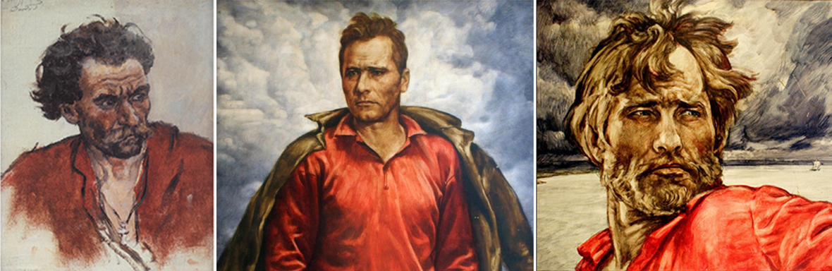 Слева: «Казак в красной рубахе». Этюд Василия Сурикова Посередине: Портрет Василия Шукшина из собрания Музея Шукшина Справа: Василий Шукшин в образе Степана Разина