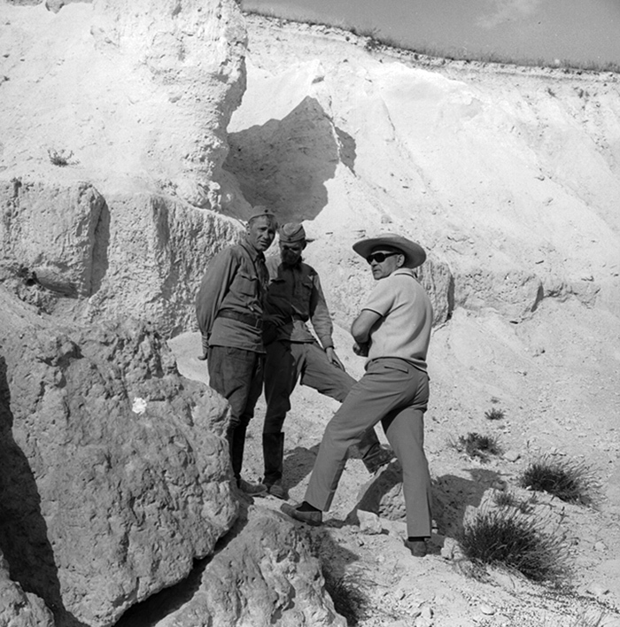 Василий Шукшин, Георгий Бурков и Сергей Бондарчук на съемках, 1974 год