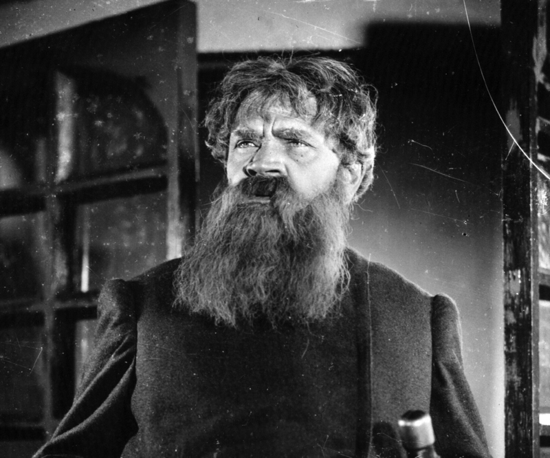В отличие от театрального, кинематографический образ Дикого Тарханова лишен особых этнографических красок. В нем нет ни живописности, ни исторической экстравагантности. Тарханов изображает его угловатым, словно вытесанным из дерева, как на скульптуре Коненкова. Длинная борода, встрепанные волосы, живот вперед, плохо сшитая поддевка с редкими сборами, палка в руках.