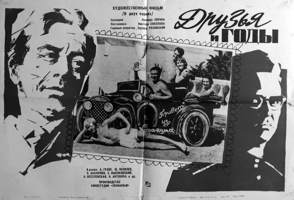 В итоге фильм сдали порезанным. Выбросили еврейский вопрос. Той картины больше нет. Мы, идиоты, не догадались сохранить старую копию. Где-то в марте 66-го состоялась премьера в московском Доме кино. Сенсация: нас приняли на ура, фильм имел огромный резонанс. Нам дали большую рекламу, большие кинотеатры. Фильм посмотрели 13 миллионов. Социалку, политическую картину! Да, ее сильно обработали, она шла беззубая, но на Невском были плакаты «Друзья и годы». На трамваях — реклама. Публикации были великолепные. Ни одной плохой рецензии. А для студии она стала эмблематичной. Герман перед каждым своим фильмом смотрел «Друзья и годы», и говорил, что весь «Ленфильм» вышел из этого фильма, просто бредил этим.