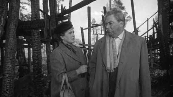 ...Помню сцену, когда приходит он в один из вагончиков, в которых жили мостовики, с неловкой просьбой уговорить девушку оставить его сына. Знал, что любят они друг друга, смущался, что горько ей от его слов, от обидных его намерений. И вот, смиряя себя, но и не теряя своей властности, растроганный, но «несогласный» Меркурьев показал, как свободно владел он одновременным многозвучанием контрастных чувств.
