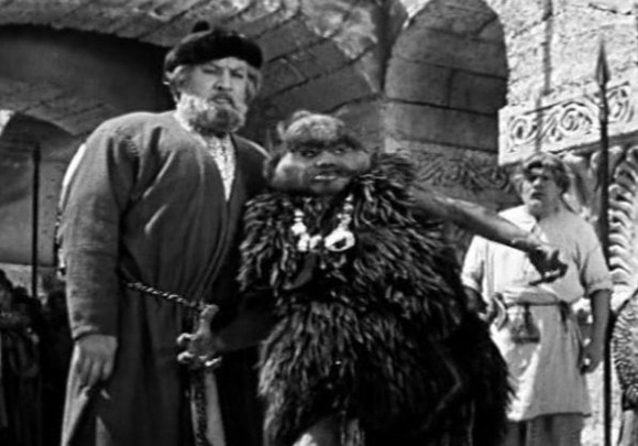 Вот «стоп-камера». Действительно, бывают случаи, когда нельзя решить тот или иной кадр без этого приёма. В «Садко» был кадр, где Вышата хватал одного человека из охраны и швырял его легко и просто. Мне хотелось показать силу Вышаты. Я не могу убедить зрителя, что он сильный, если я покажу, что он швыряет какой-то камень. Мало ли что тут можно сделать — просто надувное приспособление. Так что в этом трюка нет. Для того чтобы заставить зрителя поверить в то, что вы хотите ему поднести, вы должны вырвать у него жало сомнения, вы должны предусмотреть его недоверие и это недоверие вырвать заранее — тогда зритель поверит. В «Илье Муромце» я десятки кадров делаю для того, чтобы показать, какой Илья Муромец сильный. Я показываю, как он кидает живого человека. Так и в этом случае мне нужно было заставить поверить в то, что Вышата — такой силы человек. И что же? В одном случае он кидает живого человека, в другом случае он проносит живую лошадь. Лошадь все-таки весит 25 пудов. Первый кадр мы снимали чрезвычайно просто — методом «стоп-камера». Мы сделали чучело точно такого же роста, размера и качества. Артист Малишевский — Вышата фигурировал в момент съемки, и когда я говорил: «Приготовились!» (...) — все живое выходило. Вышата швырял это чучело с присущей ему силой. Он метров на шесть кинул это чучело, и тут же спрятался за дверь. Команда «Стоп!» и съемка прекращается. Это место освободится и чучело убирается. И в этот момент на место кладут живую фигуру. Камера продолжает работать.