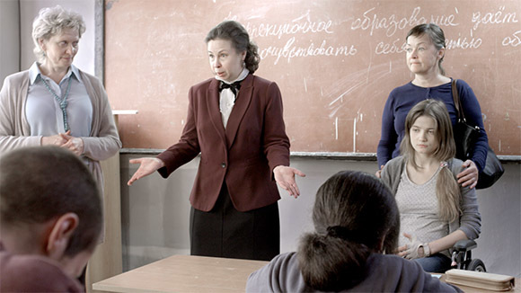 Свое предельное, гомерическое воплощение эта «чиновничья» линия получает в «Ученике» Кирилла Серебренникова, фильме, явно претендующем на энциклопедичность в описании русской жизни и вобравшем в себя все школьные штампы. Здесь школа окончательно отождествляется с государством: от гербов и орлов, которыми украшены школьные интерьеры, рябит в глазах, их тут больше, чем в Кремле. Ни один диалог с участием директора не проходит без триколора на заднем, а то и на переднем плане.