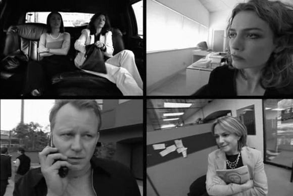 Другой такой опыт — «Тайм-код» Майкла Фиггиса, снятый на DV-камеры. Перед зрителями одновременно четыре экрана, каждому герою отведен свой. Когда герои сходятся в одном месте, происходит событие. Этот эксперимент тоже дает нам иное восприятие — не столько пространства, сколько существования людей в нем: не последовательного, но параллельного.