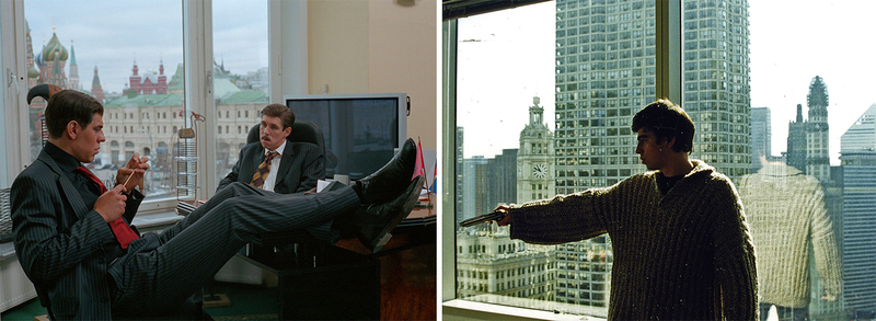 Второй город Солнца — Москва, куда отправляется в финале «Брата» неунывающий Данила. Если Петербург — призрачный город, то Москва и вовсе — город-сон, город-морок. В одном, по меньшей мере, Бутусов, в другом и вовсе Ирина Салтыкова. Столица красива и фальшива, как крашеная блондинка, поющая свои сладкие песни под фанеру. Когда в «Войне» лишившийся жены англичанин Джон, которому удалось чудом вырваться из чеченского зиндана, пытается пойти по московским инстанциям, справедливости находит не больше, чем дембель Багров. И все-таки это — еще одна утопия, вотчина Колеса Фортуны: в травестийном мире «Жмурок» более удачливые наследники Данилы, провинциальные киллеры Саймон и Сергей, находят в Москве единственное возможное в РФ счастье — дорогие костюмы с галстуками, должности депутатов, кабинеты с видом на Кремль. Плюс секретаршу Ренату Литвинову и швейцара Никиту Михалкова.