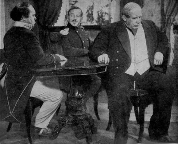 На нашу долю выпало счастье проводить репетиции планомернее и систематичнее других режиссеров. Конечно, помог наш театральный опыт и установленная искони театральная дисциплина. Полтора месяца мы репетировали ежедневно в две смены утром до 12 часов, вечером от 5-ти до 8-мн. За это время исполнители обрели свободу поведения, нашли характерность, примерно установили мизансцены. Работа была, конечно, подготовительной, условной, т. к. в дальнейшем, во время съемки, в соответствии с ее требованиями многое должно было измениться применительно к натуре, декорациям и т. д.