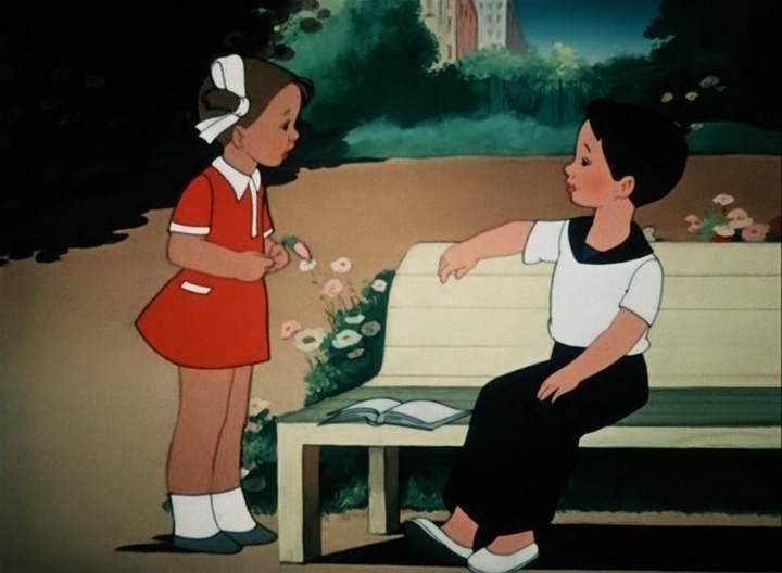 ...Помню, в «Цветике-семицветике» — там была сценка такая: девочка разговаривает, уже не помню с кем, это был длинный диалог, и просто им говорить, жестикулировать, размахивать руками было не интересно. И делать не интересно, и смотреть не интересно. Надо было придумать какое-то занятие для девочки. И я придумал, и на это пошел режиссер, Михаил Михайлович Цехановский: она, пока разговаривает, катается по накатанной ледяной дорожке. Мне нужно было сделать, как она балансирует, а в это время идет диалог... И действительно, сцена получилась живая: всю информацию, какую нужно, мне дали, и в то же время получился характер, зритель видел, что эта девочка не будет даром время терять, а, даже разговаривая, играет.... Я вот по этой линии и шел...