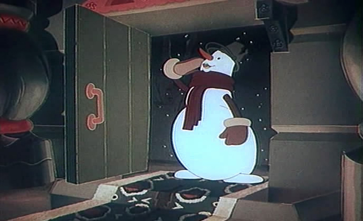 А находка (если это можно назвать находкой) заключалась в том, что Снеговик входил в дверь, но не полностью. Входил, докладывал, прикрывал дверь, потом, как бы вспомнив что-то еще, снова открывал дверь и еще раз говорил, и, в общем, я с этой дверью играл, потому что с «партнером» Снеговика — Дедом Морозом — никакого внутреннего контакта не было, герои сопоставлялись лишь монтажно... Мне показалось, что такая находка будет оправданной: ведь голова-то у Снеговика ледяная, всё он запомнить не может, ему, спустя какое-то время, приходят в голову дополнительные идеи... Я попросил, чтобы монтажница, как это у нас называется, «расставила» немного этот монолог, то есть чтобы между отдельными репликами были вклеены паузы, чтобы мне можно было это сыграть: «Ах, да, вот еще это», — как бы вспоминает Снеговик... Сцена получилась живая.