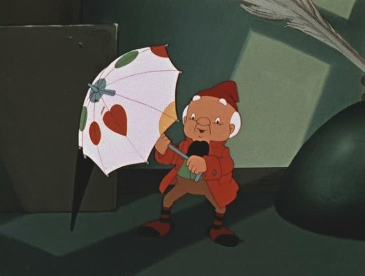 Ф. Х.: Находка была вот какая: когда Оле Лукойе, этот маленький человек, сидел на чернильнице и говорил... Ну, всё, что нужно было, я сделал, сидеть «просто так» он не мог, и «глаз», и «сердце» — все это сопровождалось, соответственно, жестами, мимикой... И он вытаскивал платок, сморкался, а потом засовывал этот платок и не попадал в карман. Несколько раз рука с платком скользила мимо кармана. Это ведь не имело отношения к действию, к монологу, правда? Но, мне кажется, именно это окрасило сцену. Окрасило ее той живостью характера, без которой, мне кажется, просто невозможно, причем в любом стиле, хотя я говорю сейчас про ту школу, через которую я прошел — школу классической анимации. А тогда, я помню, меня за это очень похвалил Атаманов... Вообще, мне кажется, что эта роль удалась мне, пожалуй, это была самая значительная моя работа как мультипликатора...