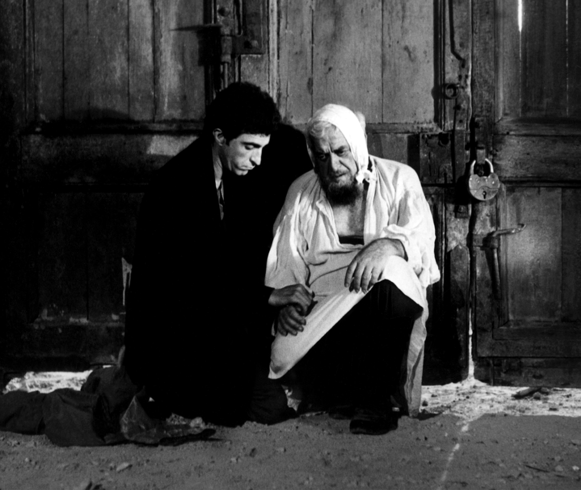 Смысловые ассоциации построены наоборот — все линии центростремительно направлены в вечность. Вот линия отцов и детей: поминающийся у Бабеля сюжет Давида и Вирсавии ампутируется и протезируется историями Авессалома и дочерей Лота, а значит, стоящими у истоков семейной цивилизации предательством и пороком. Беня Крик, гвоздящий отца и заставляющий предъявить шрамы веселящейся публике, — вовсе не Беня, а тот самый Хам. Любовь, преступная во всех отношениях (гойки и еврея, юной распутницы и старого отца семейства — и т. д.), начинающаяся в декорациях модерн, развивается в абстрактных развалинах, помнящих и пророчащих смерть — и опять-таки вечность. И финал: кровь расстрелянного Бени Крика капает в чашу творящего черную мессу чекиста... Чтобы дожать самого толстокожего зрителя, кровь смешивается с мочой оскверняющего небо и землю вечного революционера-убийцы.
