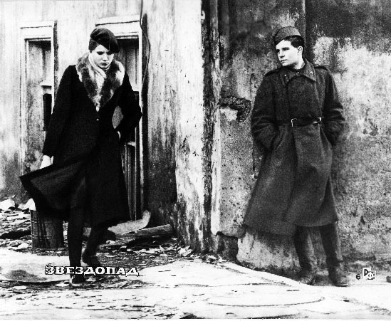 Г.Р.: Может быть. Смыслы улетучивались. Был там эпизод — мальчишка в вагоне. Он смотрит в щель. И видит в пульмановском вагоне напротив очень красивую крашеную блондинку. Смысл был в том, что мальчишка голый. А блондинка почти допила бутылку коньяка и рыдает... С этой сценой ничего вообще не получилось. На съемке оказалось все другое: и вагон какой-то дрянной, и блондинка, ставшая брюнеткой. Словом — всё наоборот. Но изменить ничего нельзя. А вначале изучали материал, смотрели военные фотографии.
