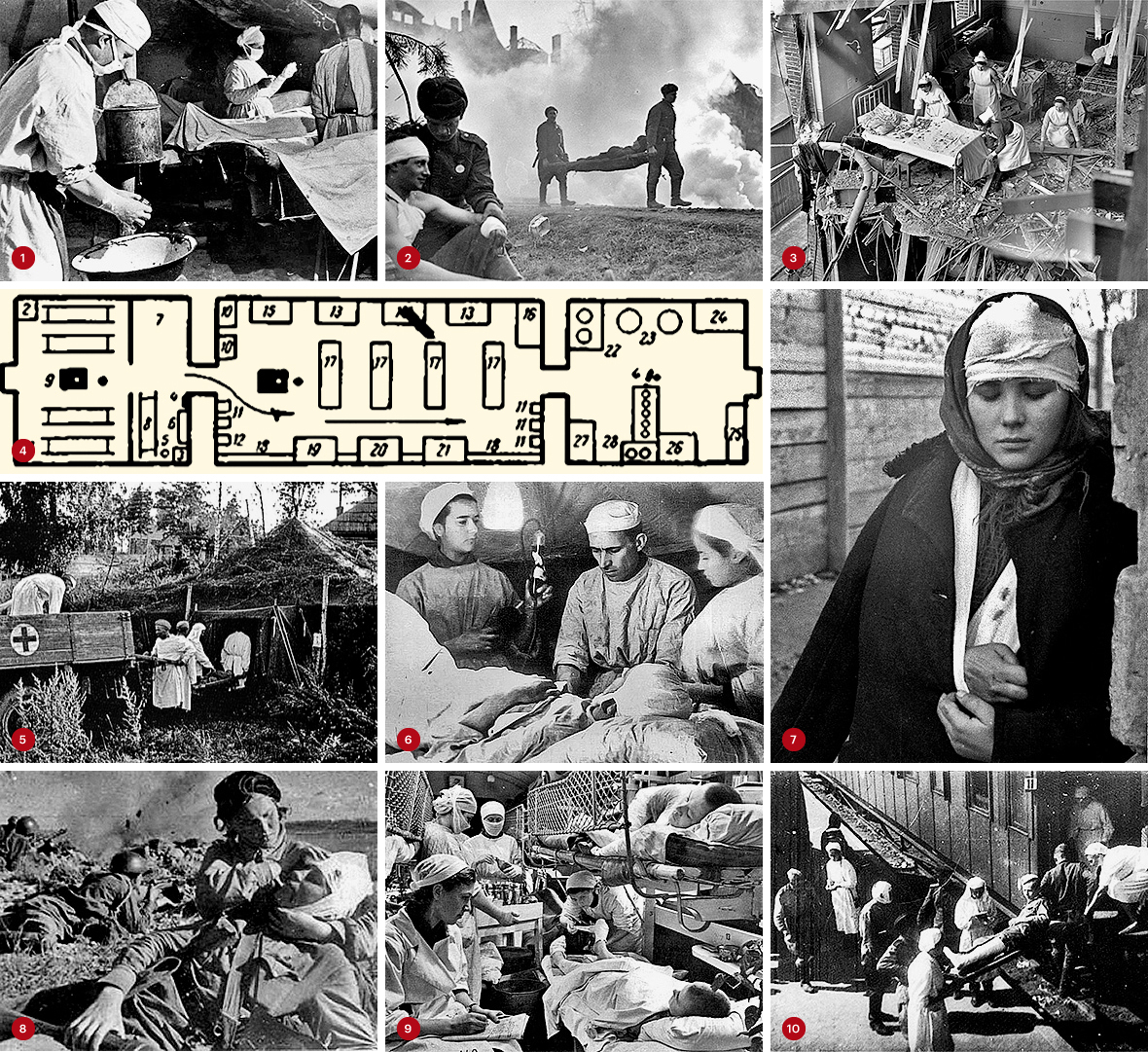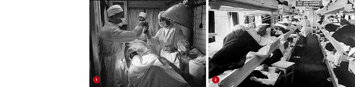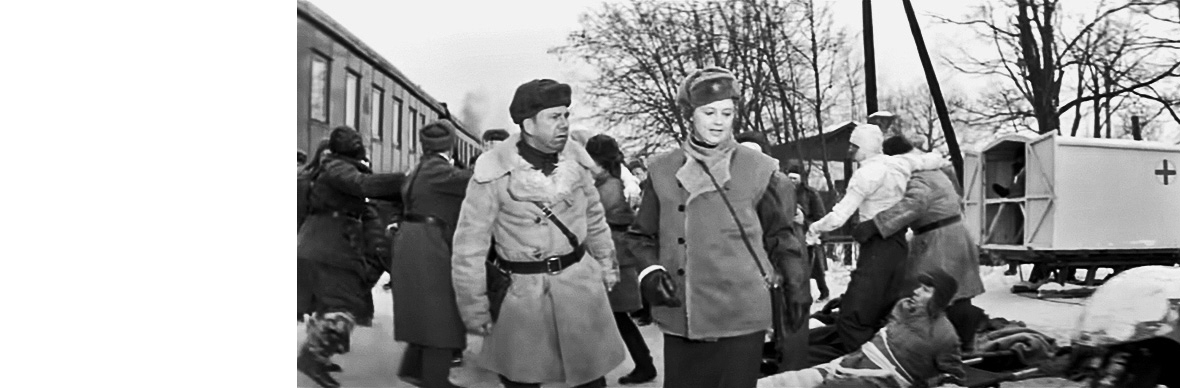 Фильмы о медицине времен Великой Отечественной войны строятся на оппозициях: жизнь — смерть, норма — патология, мир — война, тыл — фронт, белый халат — темная униформа.