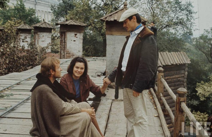 Но главная страшилка для охранителей святых соцреалистических заповедей была чисто идеологического свойства — более всего сценарий о Рублеве пугал своей «религиозной» проблематикой. Ведь действие все время крутится вокруг церквей и монастырей. Сплошные монахи в рясах. Отливают церковный колокол. Да и сам-то Рублев, сколь ни называй его «великим русским художником», — иконописец! Он ведь не ревплакаты пишет, а иконы!