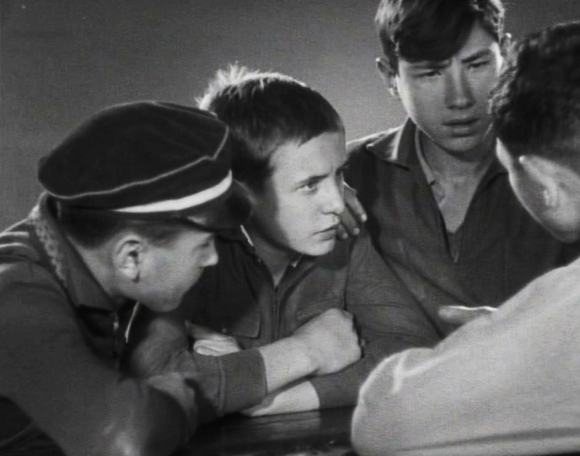 По стилистике эта картина предвосхищает находки неореалистов: ни одного помпезного кадра — коммуналки, бытовая неустроенность, рядом со здоровыми детьми в классе маленький горбун, задворки, подворотни…