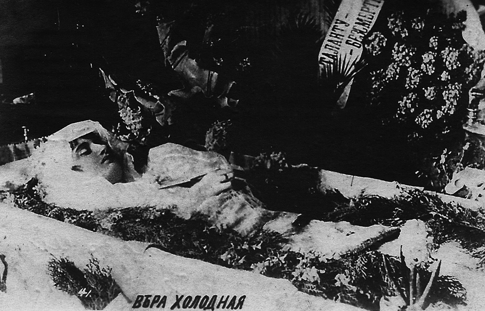 Смерть актрисы Веры Холодной. Она скончалась в возрасте двадцати шести лет от «испанки», осложненной воспалением легких. В последний путь «королеву экрана» провожала вся Одесса. Титул «королевы экрана», поначалу присвоенный ей прокатчиками и рецензентами, был быстро подхвачен и утвердился в разных слоях российских кинозрителей. В большинстве фильмов Вера Холодная воплощала образ прекрасной, порядочной, но слабой женщины, сломленной обстоятельствами жизни.