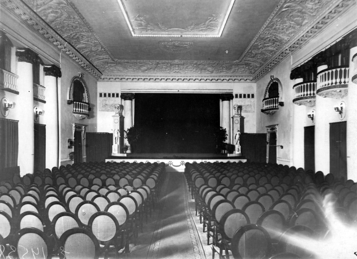Состоялось открытие нового кино-театра «Кино-Колосс» в Большом зале консерватории. «Это самый большой сейчас кинозал в Москве и один из немногих самых больших в республике — 2000 мест. В помещении кино и фойэ произведен капитальный ремонт, благодаря чему оно получило изящный и величественный вид. Дирекция, во главе которой стоит старый опытный администратор, А. Л. Брокш, не смотря на трудности первых постановок и отсутствие еще в Р.С.Ф.С.Р. лучших европейских и американских фильм, усиленно добивается поставить работу в театре по образцу величайших кинематографов в Европе и Америке. Одним из этих нововведений „Кино-Колосса“ является длительная монопольная демонстрация особо выдающихся картин, заарендованных театром. Первой такой постановкой будет известная всей Европе картина „Леди Гамильтон“. Картина пойдет с 26 октября в течение нескольких недель. Постановке этой картины будет предшествовать общественный просмотр ее деятелями кинематографа и представителями печати». Кино (М.). 1922. № 1.