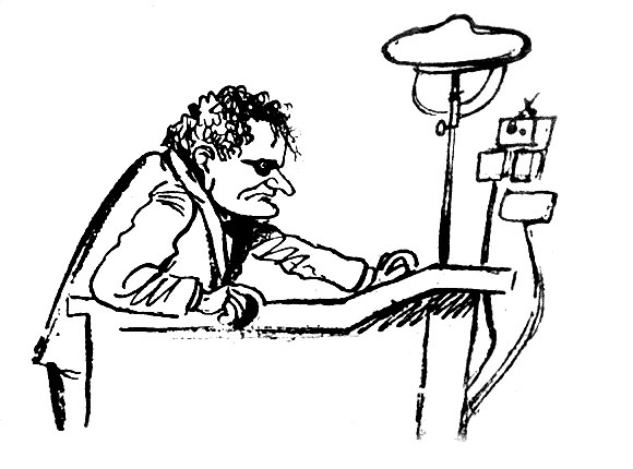 Роман Уэллса «Невидимка» представляется мне гениальной вещью. В нем рассказывается о том, как некий физик, по фамилии Гриффин, стал невидимым. Дело происходит в Англии. Свои опыты этот физик обставил тайной. Буржуа начинают строить догадки: не занимается ли он вивисекцией? Появляется невидимая кошка. Она бежала из лаборатории, где работает Гриффин. Подозрения буржуа укрепляются. Да, он занимается вивисекцией. Это преступление. Ученый понимает, что ему не дадут довести дело до конца. Он спешит, и происходит так, что он не успевает приготовить для себя платье, которое было бы невидимым. Он невидимка, — но только тогда, когда он гол. Он поджигает лабораторию и бежит. В дальнейшем начинаются приключения невидимки. Это слово не подходит в данном случае, так как Уэллс отказывается от игры увлекательными ситуациями, которые могли бы складываться при таком сюжете. Его интересует другое: он изображает судьбу человека, оказавшегося резко-обособленным от всей остальной среды. Эта судьба ужасна.