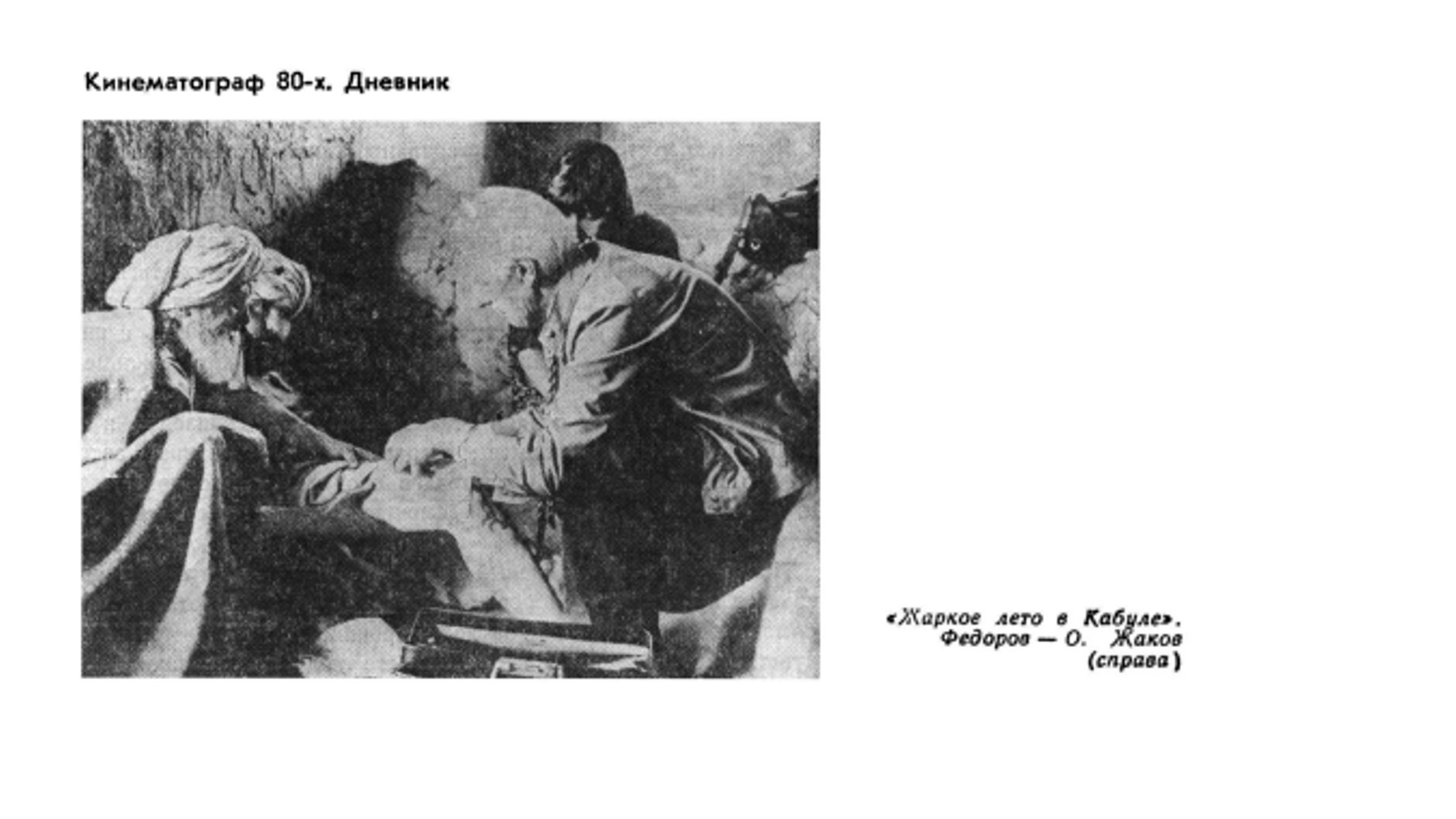 Итак, документальность игрового фильма, правда жизни, которая становится художественной правдой, — вот то главное, о чем — я убежден — прежде всего следует говорить, размышляя о картине «Жаркое лето в Кабуле». С этих позиций и посмотрим на нее. Авторы ленты стремились использовать все известные средства для максимального слияния элементов художественного вымысла с реальной действительностью. Именно в этом видится их творческий принцип в подходе к материалу. Тот единственно возможный, на мой взгляд, принцип, следовать которому можно было, создавая произведение о событиях еще не минувших, драматичных и сложных. История, подобно горным хребтам, рождается из великих катаклизмов, и афганские события — это бурный вулканический процесс, который происходит на наших глазах.