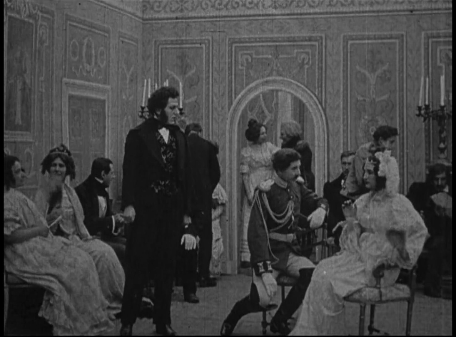 «Съёмка была в полном разгаре. Трещал ручкой съёмочного аппарата оператор-фотограф. Кричал режиссёр-старичок с каким-то неопрятным лицом. Кричали и суетились актёры… На сцене должен быть изображён совет в Филях. Декорация — изба с расклеенными по стенам картинками из японской войны. Я вслушался в общий хор голосов. Режиссёр кричал: „Генералы должны сидеть вокруг стола… Вот так… Потом все встанут, когда встанет Кутузов… Потом махнут рукой и головой… вот так…“ Режиссёр дёрнул несколько раз головой, как добрая породистая лошадь. „Понимаете?.. Потом Кутузов поднимает кверху глаза со слезой и палец правой руки… Вот так…“