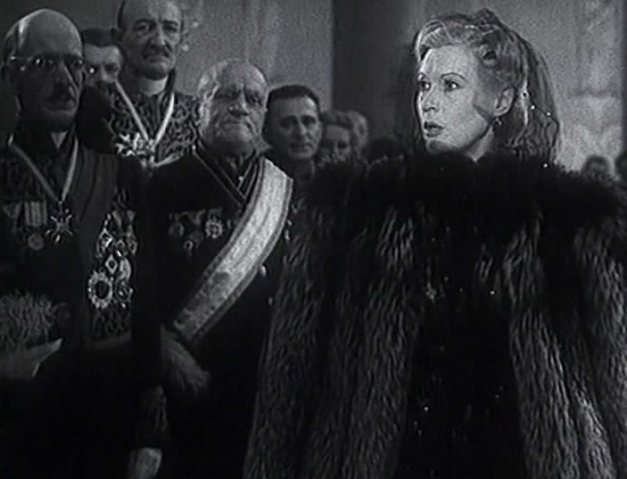 Другие режиссеры снимают нечто вроде хрестоматии по литературе. Надо сказать, что в действительности наши студии заняты съемками совсем других картин. А у Александрова Пушкин читает стихи на мостике через Мойку, под которые проплывает нечто вроде венецианской гондолы. Два Гоголя, равно карикатурных, спорят об интонациях в гоголевской фразе. Маяковский, у которого похож только жилет, читает стихи на фоне финала из «Цирка» или документальных съемок физкультурного парада 1946 года. Наконец, донельзя Глинка, закатив глаза в сладчайшем «фермато», хватает постороннюю, случайно забредшую на съемки Никитину под руку и влечет в гигантский павильон, где в устрашающих ракурсах операторы снимают балы да танцы не то из «Сусанина», не то из осужденного варианта «Адмирала Нахимова»...