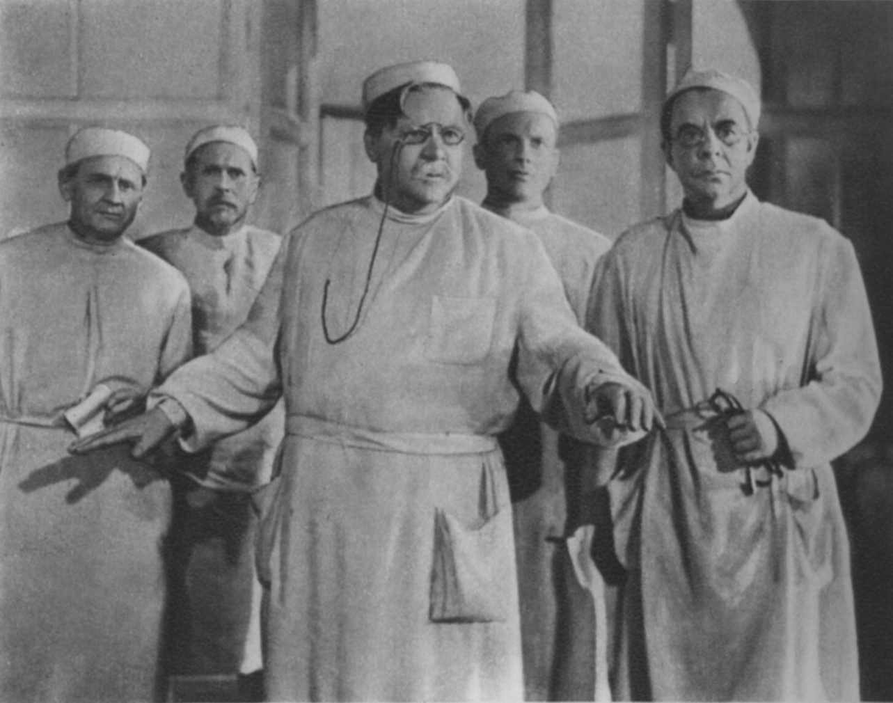 Алексей Дикий в роли в роли Василия Васильевиа, хирурга в фильме «Повесть о настоящем человеке». Реж. Александр Столпер. 1948
