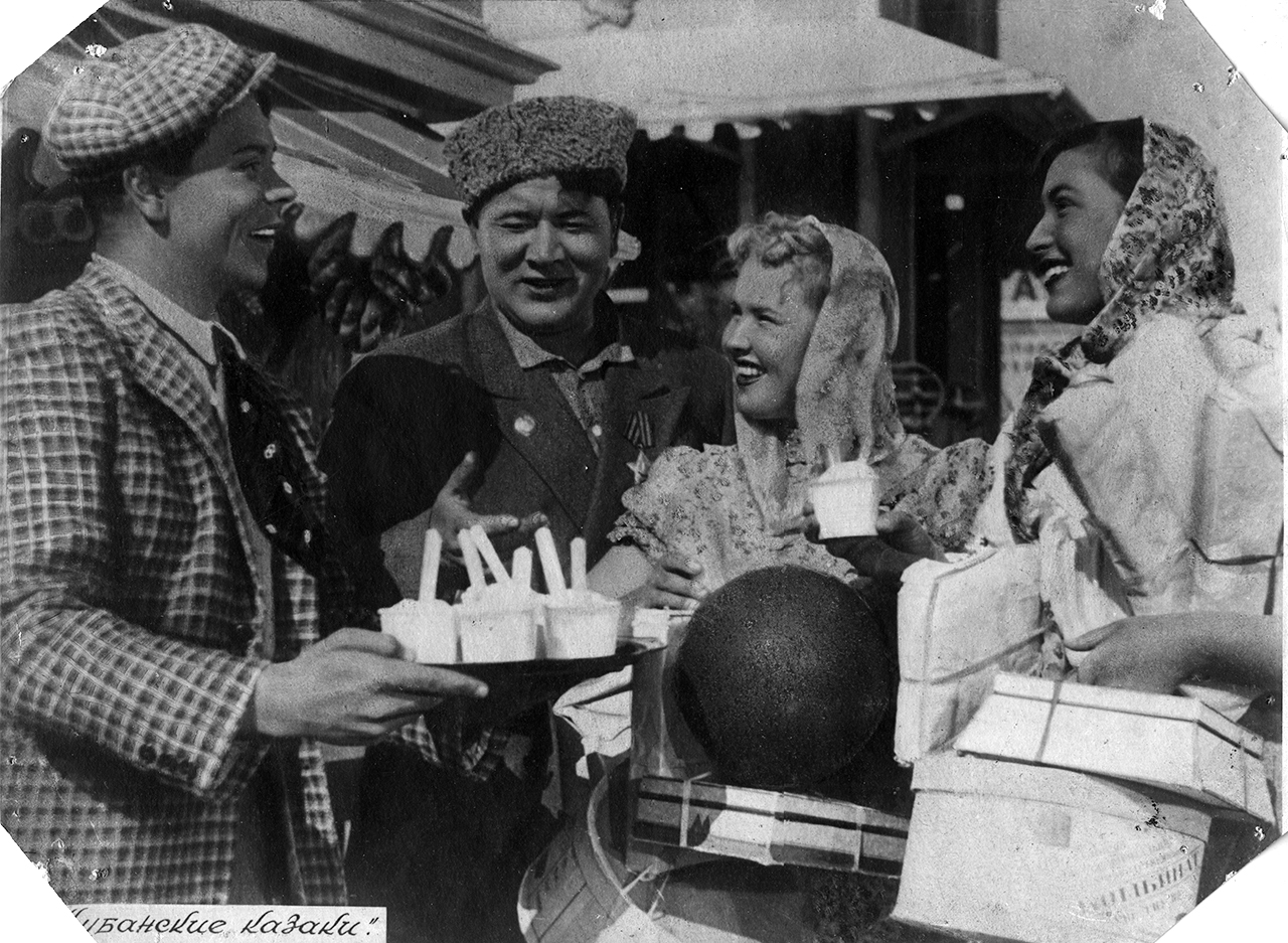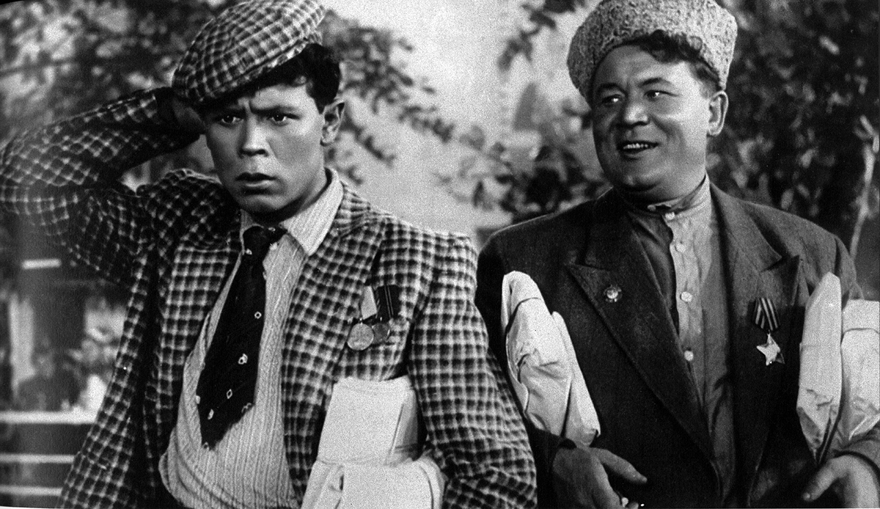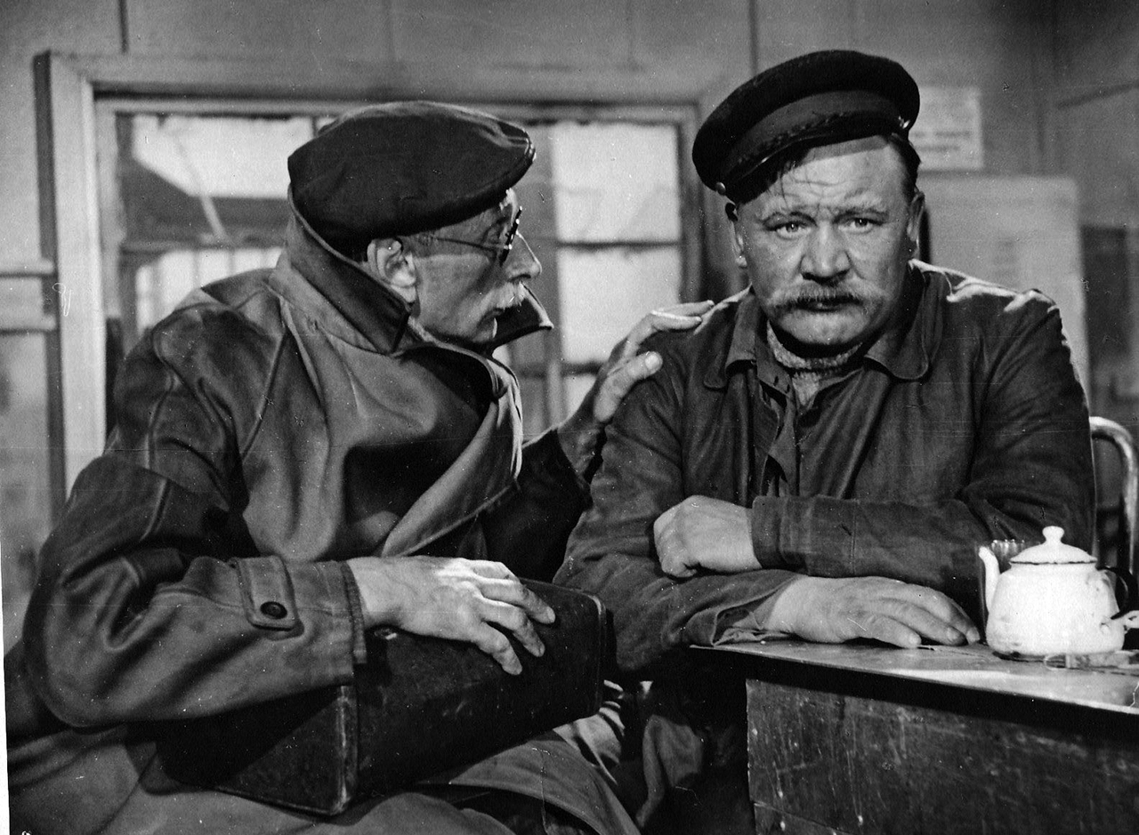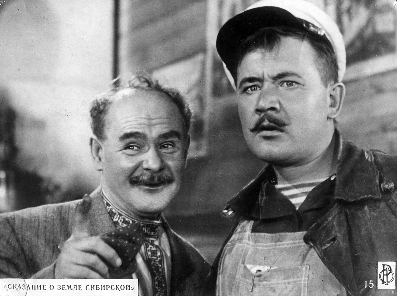 Сергей Калинин в роли заведующего чайной Корнея Заварина и Борис Андреев в роли шофера Якова Бурмака в фильме «Сказание о земле Сибирской». Реж. Иван Пырьев. 1947