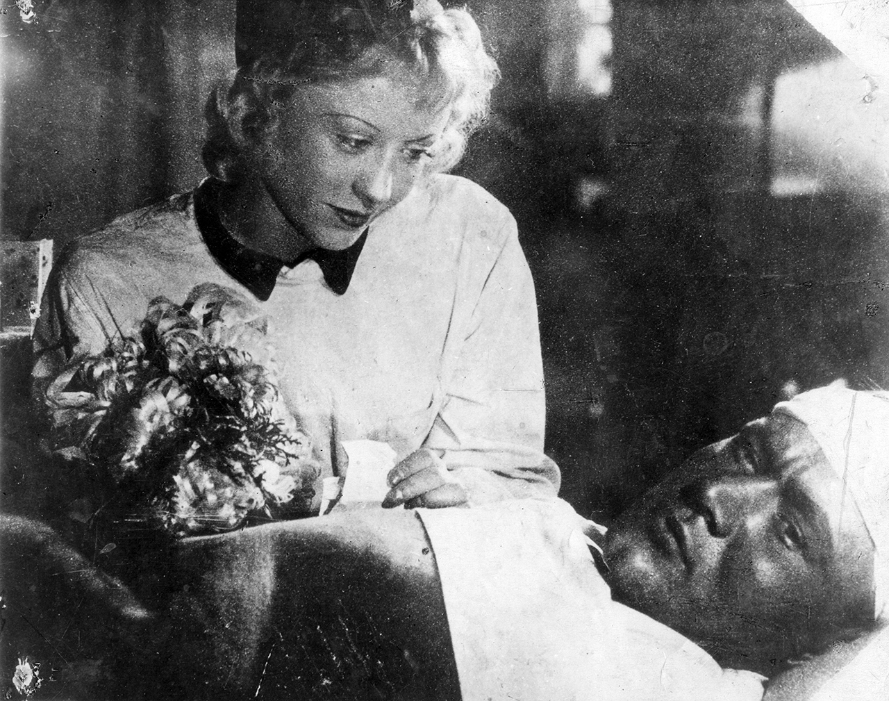 Янина Жеймо в роли медсестры и и Борис Андреев в роли Саши Свинцова в фильме «Два бойца». Реж. Леонид Луков. 1943