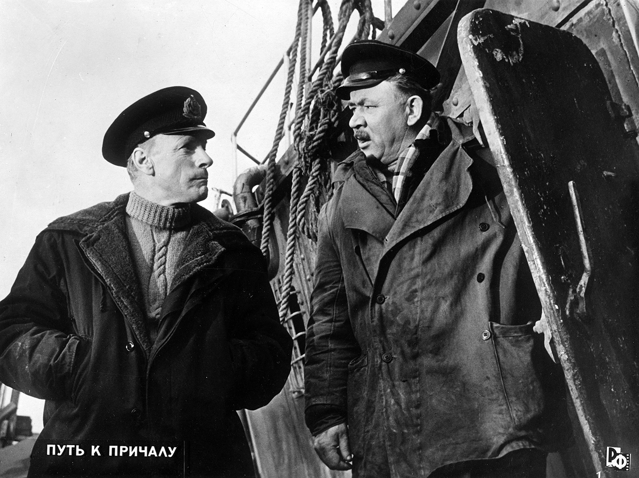 Олег Жаков в роли капитана Георгия Гастева и Борис Андреев в роли боцмана Зосимы Росомахи в фильме «Путь к причалу». Реж. Георгий Данелия. 1962