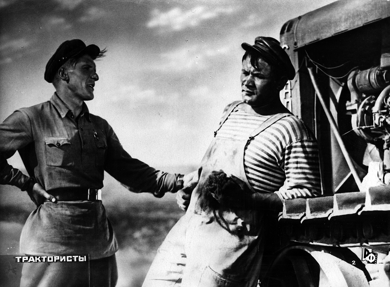 Николай Крючков в роли Клима Ярко и Борис Андреев в роли Назара Думы в фильме «Трактористы». Реж. Иван Пырьев. 1939