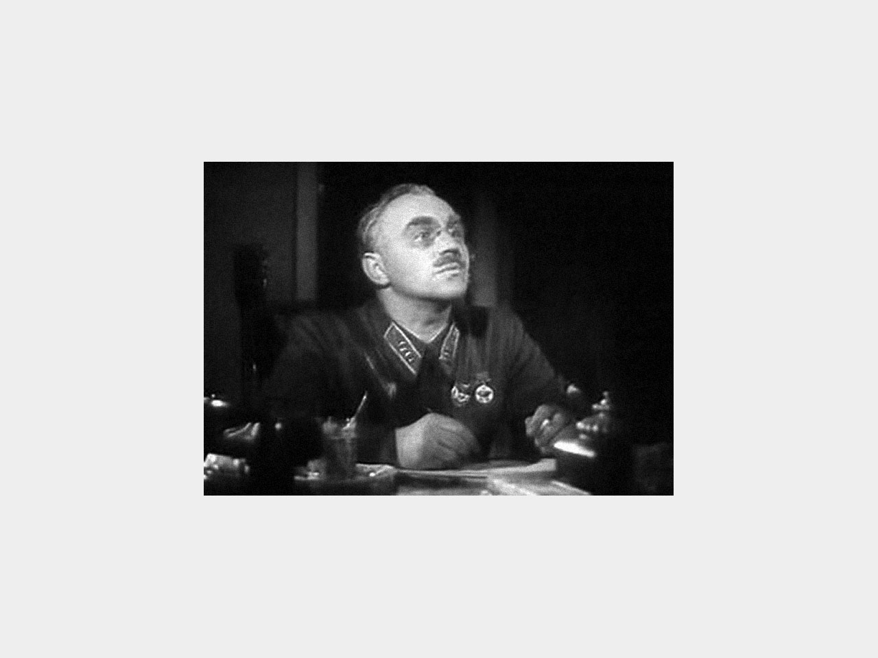 Борис Блинов в роли командира Крайнева в фильме «Четвертый перископ». Реж. Виктор Эйсымонт. 1939