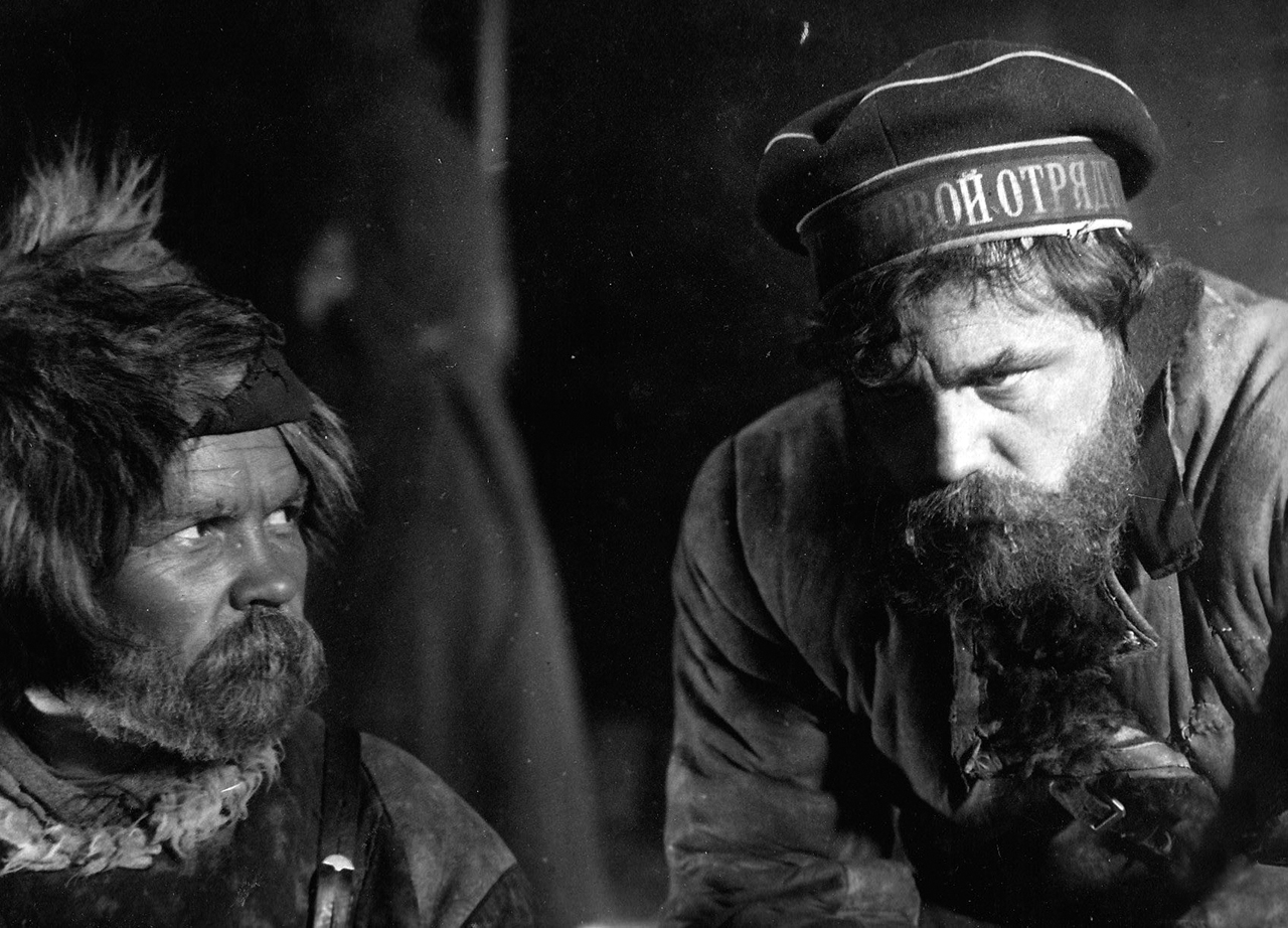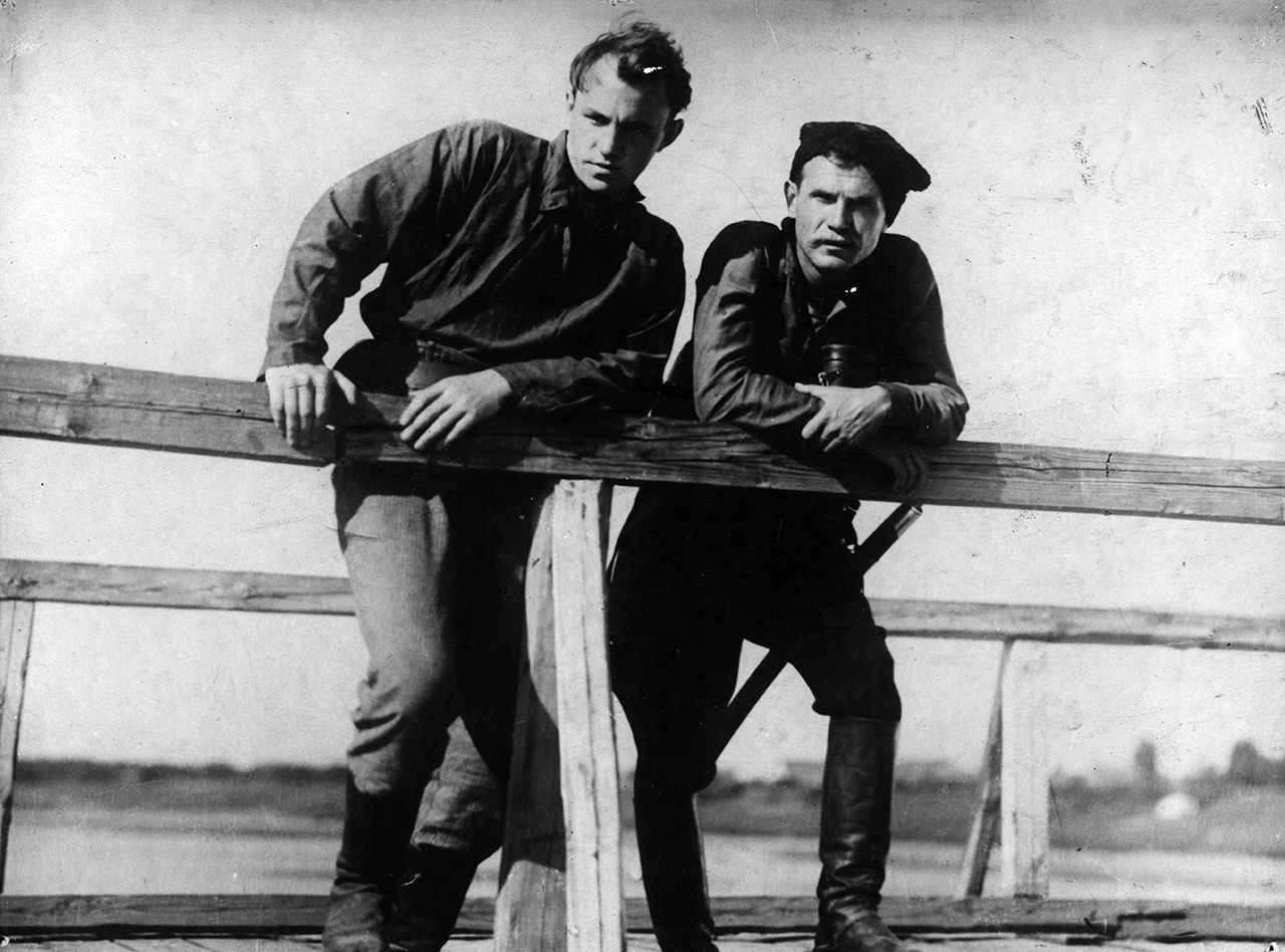 Владимир Лукин в роли крестьянина Квитко и Борис Блинов в роли партизана Бублика в фильме «Волочаевские дни». Реж. Георгий и Сергей Васильевы. 1937