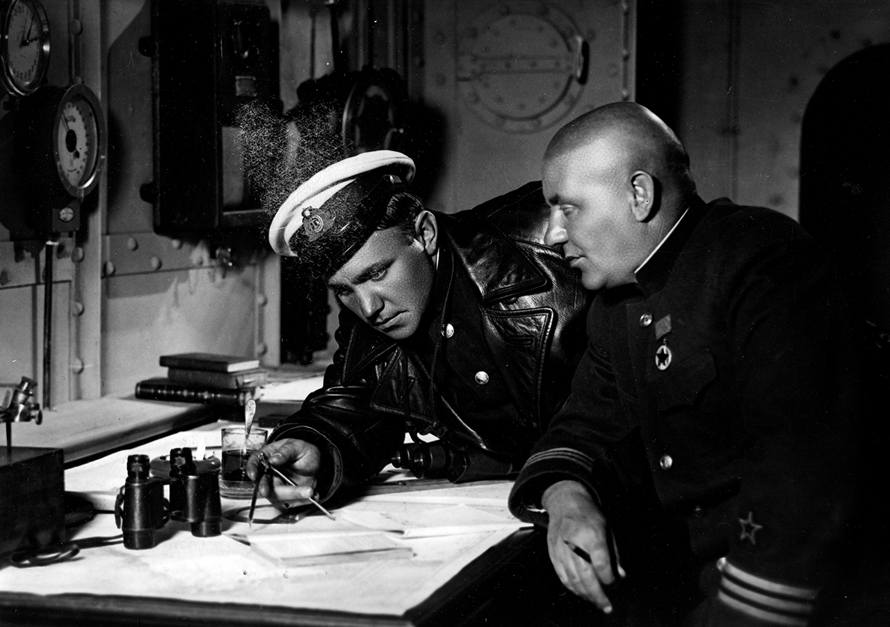 Константин Нассонов в роли комиссара Зотова и Борис Блинов в роли командира Крайнева в фильме «Четвертый перископ». Реж. Виктор Эйсымонт. 1939